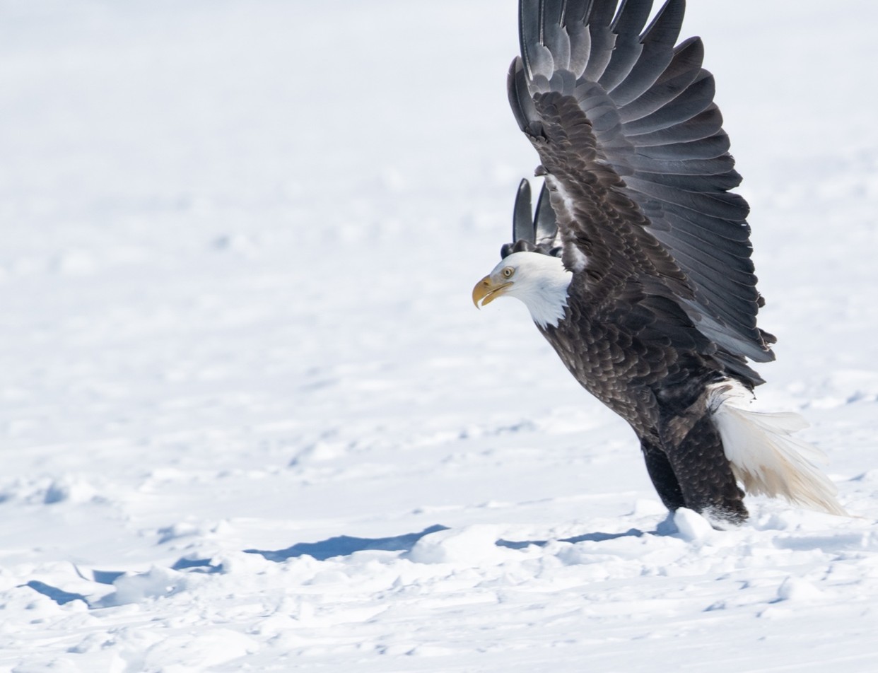 The ice fishermen were out over the weekend. I use the masculine “fishermen” not to be misogynistic, but simply because they were all males. One of the men left a fish on the ice for the eagles. It wasn’t long before the gift drew attention. The eagle spied the fish…
